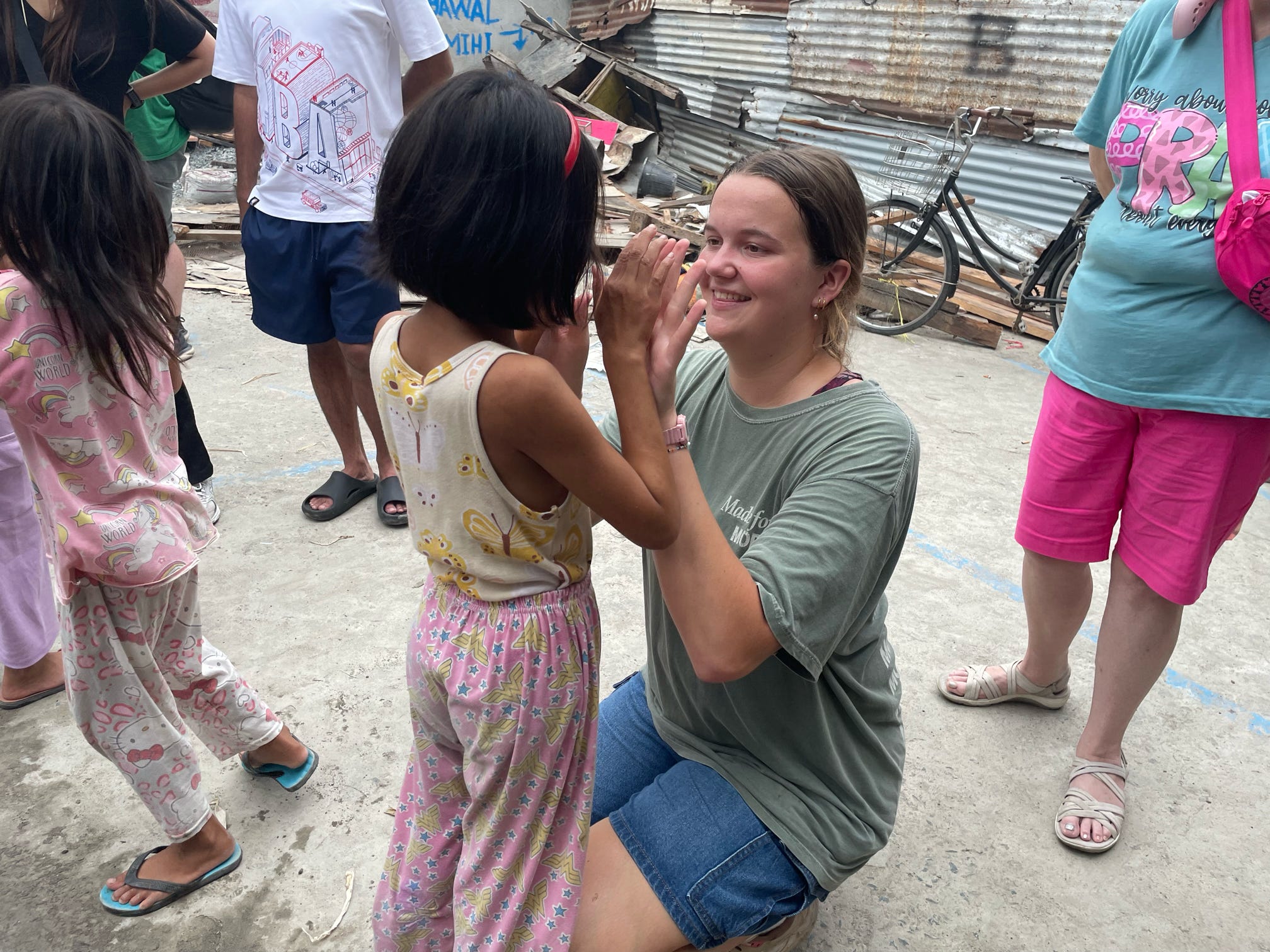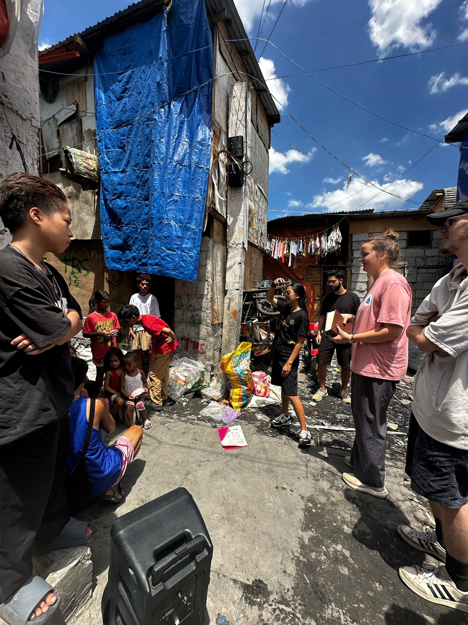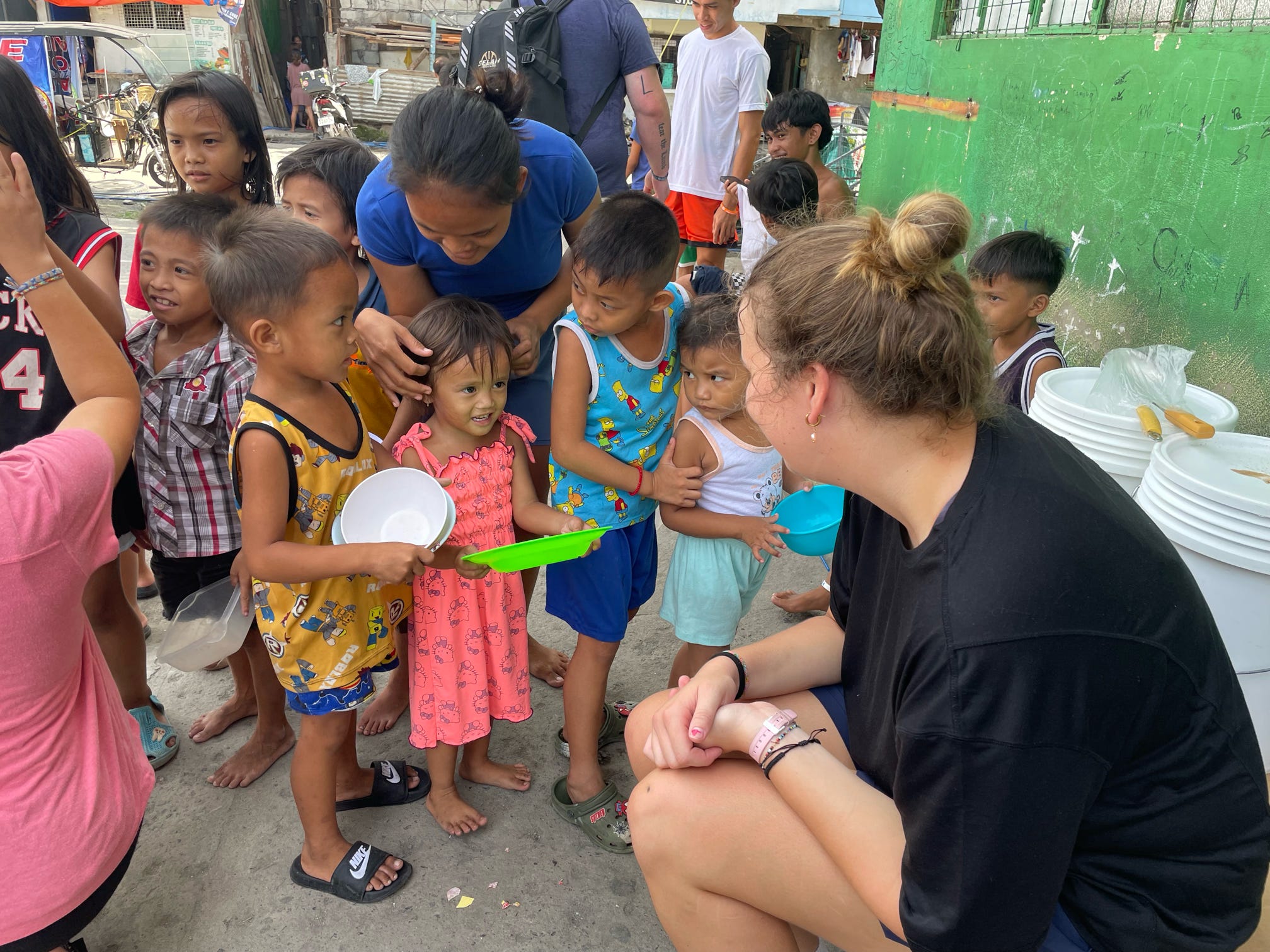Door-to-door feedings happen in newer areas where relationships are still being formed. We walk through the streets with the food buckets, handing out meals along the way.